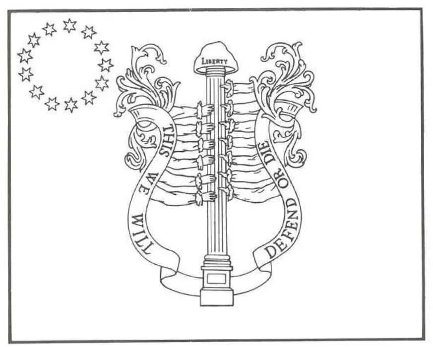 There is scarcely a more fitting way of celebrating Flag Day, June 14th, the anniversary of the adoption of the "rebellious stripes" by the Continental Congress, in this bicentennial year than by creating copies of those Revolutionary banners that were carried by the Heroes of '76, flying them at the head of your parading NMLRA re-created Militia or Continental army unit.