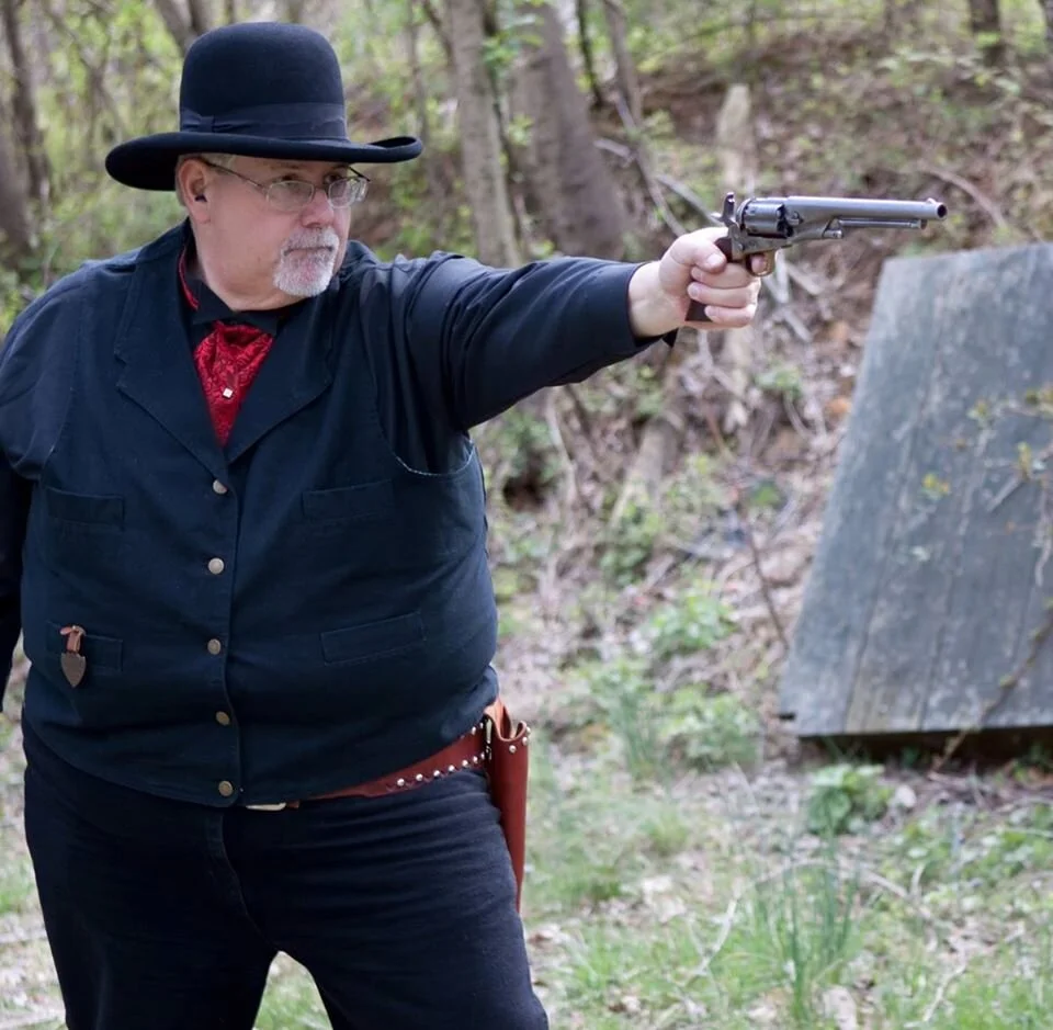 Mike Beliveau toting a cap and ball revolver, one of the favorites of his youtube fans.